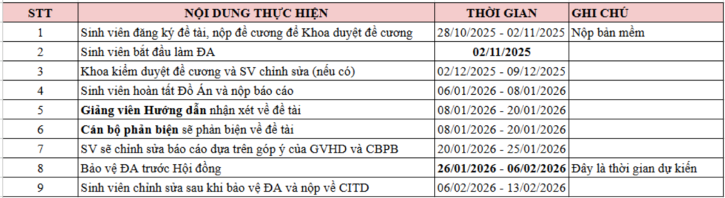 [CITD] Kế hoạch thực hiện Đồ án tốt nghiệp (6TC) và đăng ký đề tài ĐATN HK1 NH 2025-2026